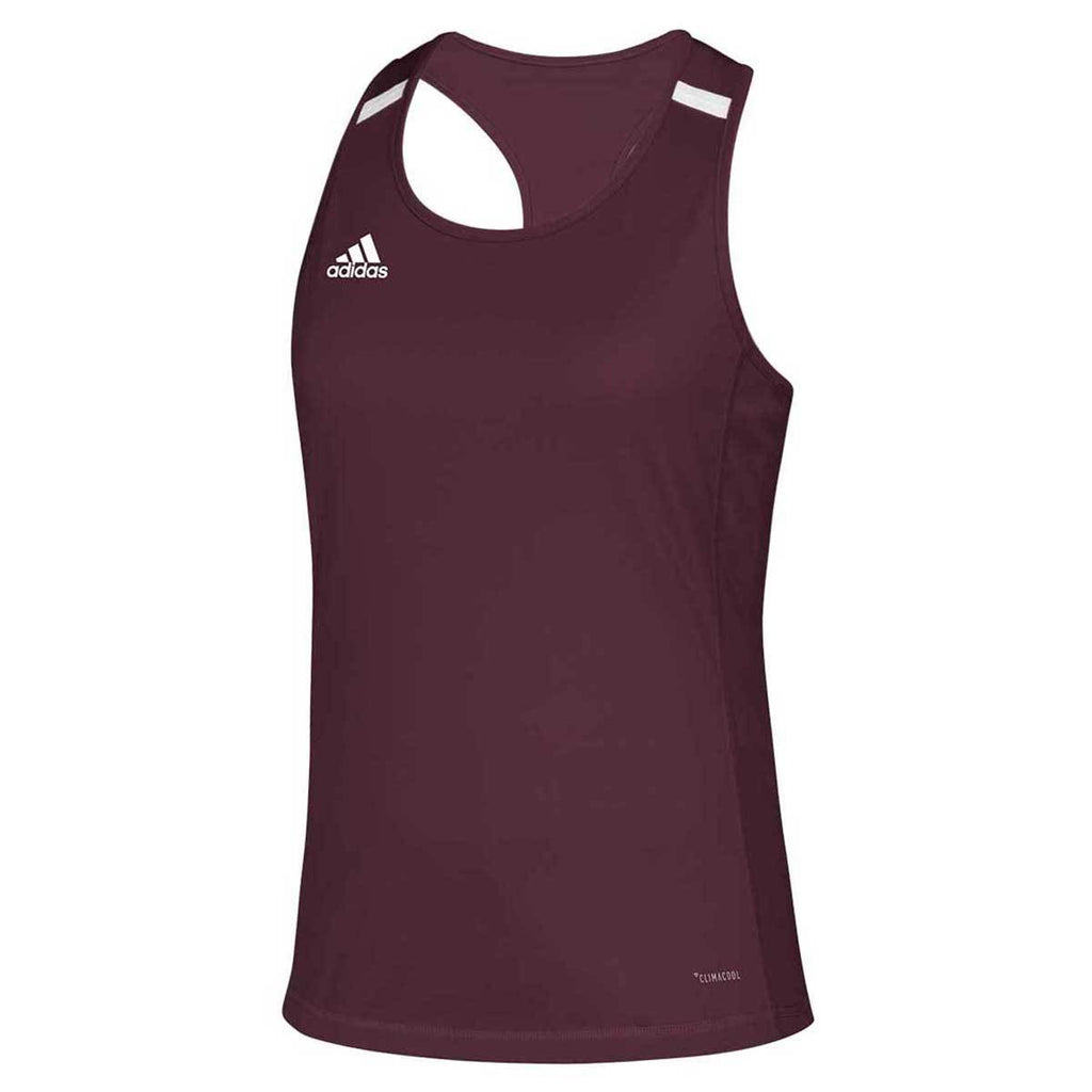 Stay cool in a custom adidas Women's Maroon/White Team 19 Singlet Tank in a variety of color options. Made of recycled polyester double knit body and side panels and engineered mesh back panel, this is the choice for athleisure wear. Whether you are focused on a team event or need a great option for staying fit, this custom logo singlet tank is a must have. For companies committed to better health, these make great employee gifts or uniforms with climacool technology. The adidas iconic logo is on the right chest front with your heat transfer of choice proudly placed across the chest.Highlights