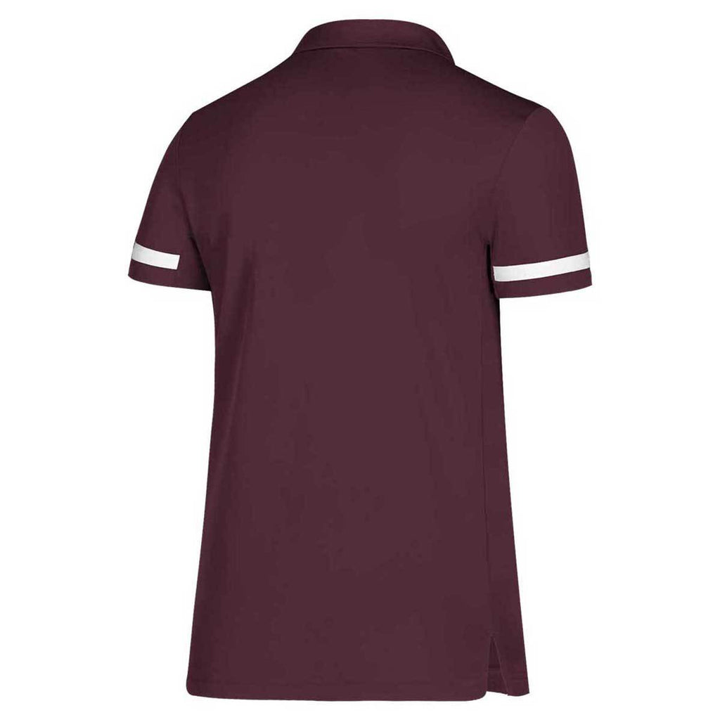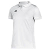 Class up your custom look with the adidas Women's Maroon/White Team 19 Polo. Available in seven color options and made of 100% recycled polyester warp knitted pique this is the perfect polo for a corporate event that can also be used as part of a uniform. Add a corporate embroidery to use for team events at the company get togethers or wear to the office on casual Fridays. The heat transferred adidas logo appears on the right chest and a single white stripe rests on the cuff. Mesh side panels and underarm gussets assure a full range of motion in the two button placket polo that everyone will love.Highlights