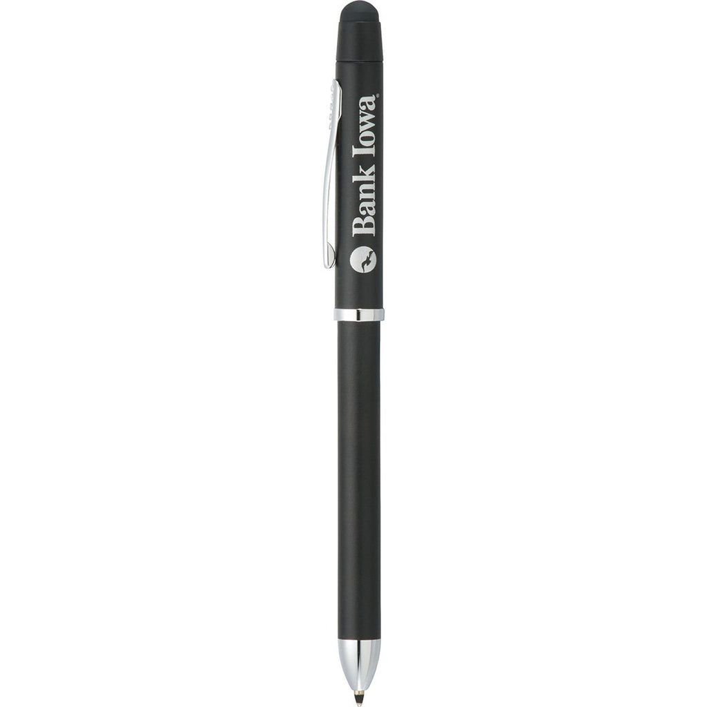 Cross Black Tech3 Plus Satin Multi Function Stylus is an impressive solution featuring a surprising amount of options in a beautiful design that can be custom logoed. By twisting the barrel, you can switch among black ink, red ink, a mechanical pencil, and a stylus tip. The stylus also comes with an eraser and will be a practical gift with an edge for any occasion.