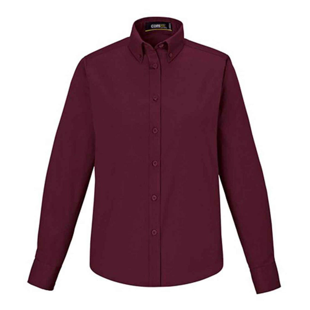 Core 365 Women's Burgundy Operate Long-Sleeve Twill Shirt