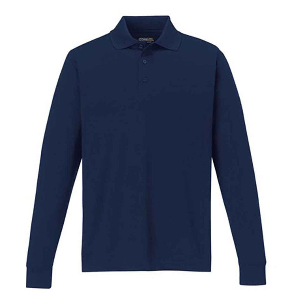 Trying to match a shirt with a pair of khakis can be a frustrating fashion endeavor. The Core 365 Men's Classic Navy Pinnacle Performance Long-Sleeve Pique Polo makes the matching of a shirt and pair of khakis a no brainer. Designed with a matching flat knit collar, the multi-purpose long sleeve polo includes moisture wicking technology that keeps you cool under the collar. Antimicrobial properties ensure the pique polo smells as fresh at the end of day as it did when you put it on in the morning. Spandex rib knit cuffs create more mobility for your arms and hands. Add a corporate logo to promote your company in the community.Corresponding Women's Style: Core 365 Women's Classic Navy Pinnacle Performance Long-Sleeve Pique Polo