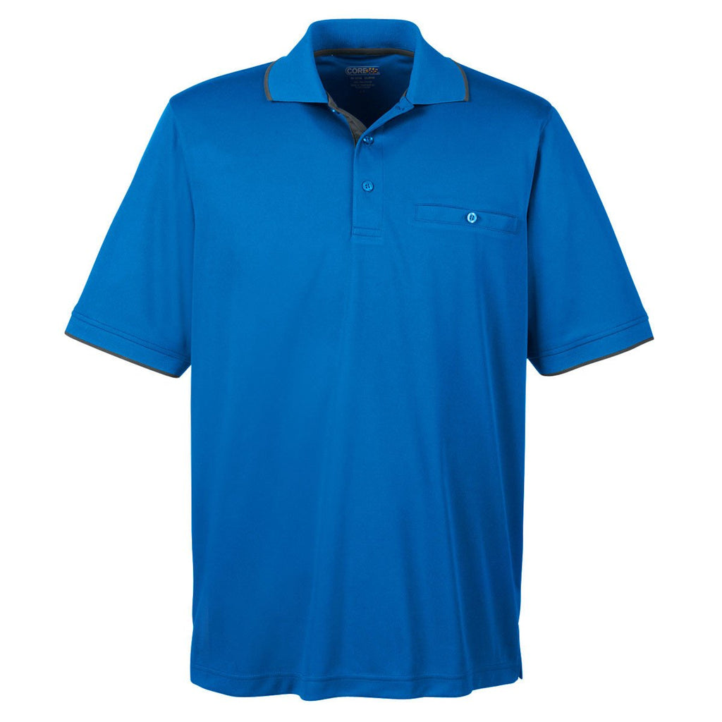 Core 365 Men's True Royal/Carbon Motive Performance Pique Polo with Tipped Collar