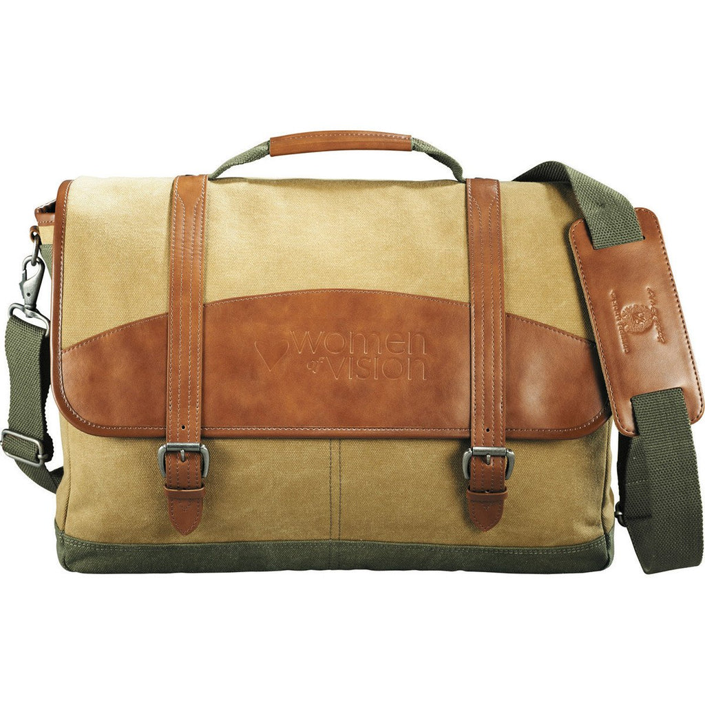 The minimum order for this product is 6 piecesIt looks like a simple messenger bag, but deep inside the Cutter & Buck Cream Legacy Cotton 17" Computer Messenger are several ways to store all of your business accessories. The padded laptop sleeve includes a zipper to ensure your valuable electronic devices remain secure inside of the messenger-style bag. The cotton canvas protects everything stored inside of the bag against strong impacts and prolonged exposure to moisture. The leather comfort grip handle allows you to carry the messenger, without worrying about your hands chafing. Add your company logo to promote your brand in the community.