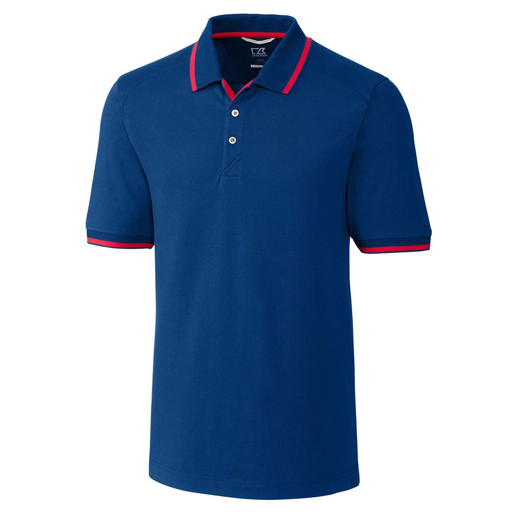 How many ways can you say 'good looking'? This Cutter & Buck Men's Nautical/Virtual Tall DryTec Short Sleeve Advantage Tipped Polo will make the wearer stand out in a crowd. And with your custom logo on it, you will get plenty of brand name recognition. The ribbed collar and ribbed cuff on the sleeve have melange tipping. The three-button front placket has diagonal stitching. More interest has been added to the styling with forward angled shoulder seaming, grosgrain back neck tape and locker loop, and back yoke with angled seaming. It looks perfect untucked with the side vents. There is also tonal C&B Pennant embroidery at back half-moon.Highlights
