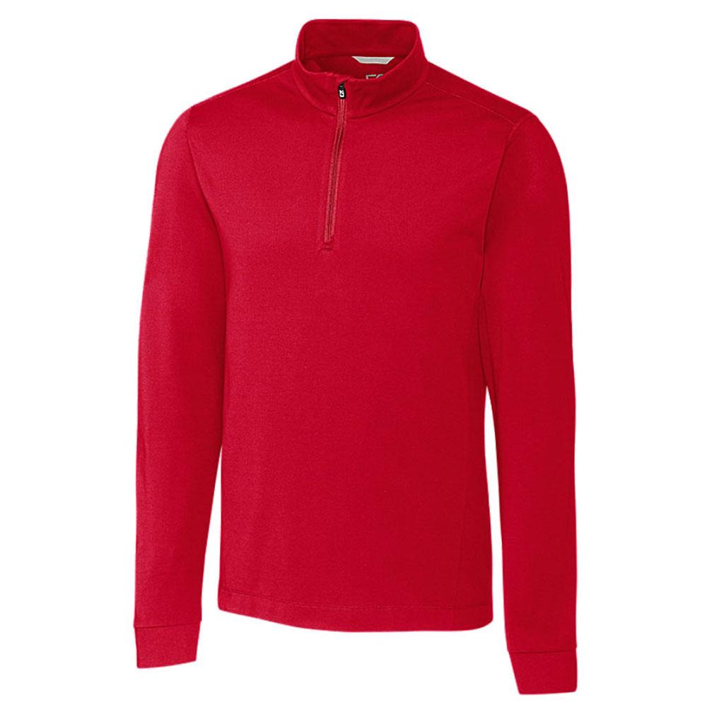 The Cutter & Buck Men's Cardinal Red Tall DryTec Long Sleeve Advantage Half-Zip has a pique design with cotton and polyester mixed in well, making it a comfortable canvas for your company's custom logo. The DryTec Cotton+ fabric resists moisture well while offering 35+ UPF protection. The design fits great for outdoor events including recruitment events. This half-zip top is ideal when finding a custom jacket for employees looking for something attractive to wear during the coolest and windiest times of the year. The fashionable and sleek look makes it ideal as a company gift while still being flexible and relaxing for many fashion needs that a man might hold for an outing.Highlights