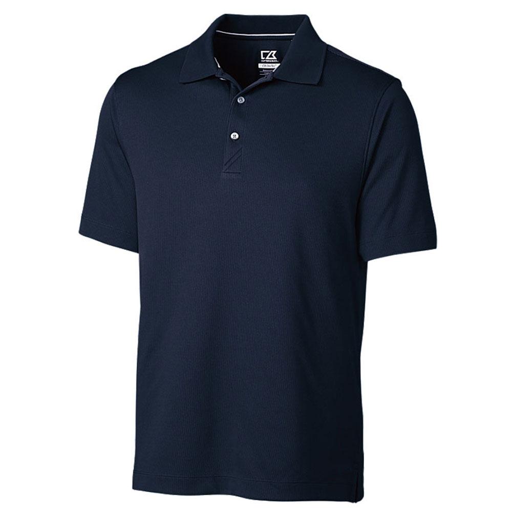Businesses looking of corporate golf gifts should see the Cutter & Buck Men's Liberty Navy Tall DryTec Glendale Polo. The classic look of the polo features a polyester body that protects the wearer from UV rays. The rib collar adds a flexible look while the open sleeves and side vents allow air to move into the body well. The comfortable and well-circulating design of this polo makes it useful for not only golf events but also for use as a corporate outfit or uniform for outdoor summer use. Either way, with the addition of your custom logo, this shirt is a great way to market your company.Highlights