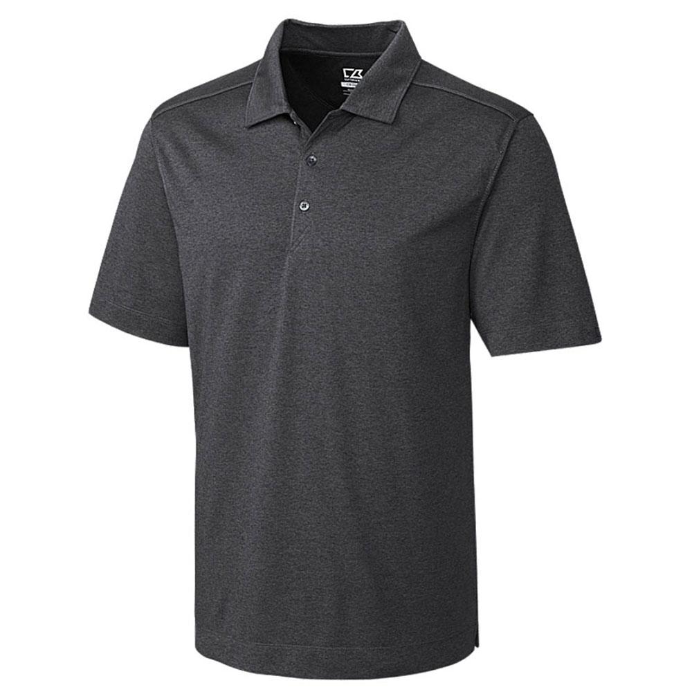 The solid look of the Cutter & Buck Men's Charcoal Heather Tall DryTec Chelan Polo provides a beautiful layout for your company's custom logo. The polyester jersey fabric fits in well for use on a company uniform, while also providing the necessary comfort for an every day outfit. A small logo can be added to the custom shirt to produce a classic appearance all around. The polo shirt is nice for use at company events and can be a fine gift to any long-term employee at your workplace.Highlights