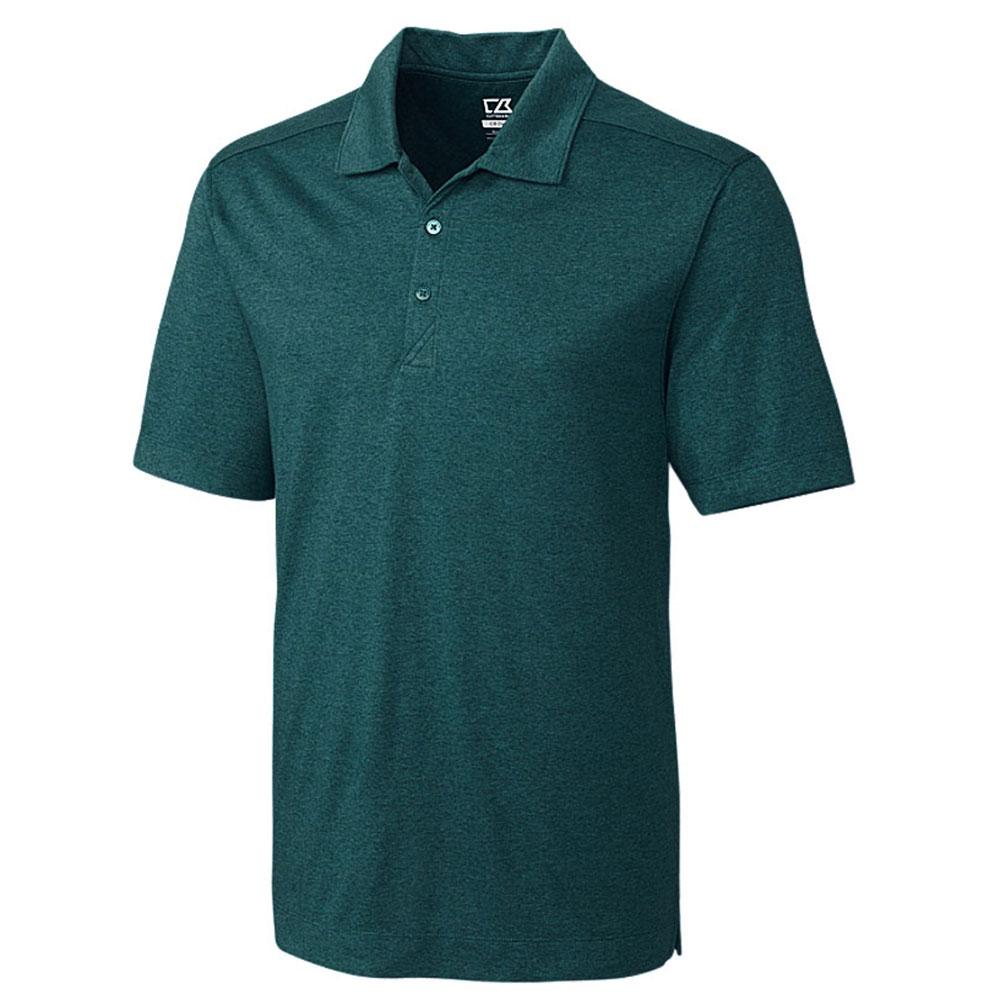 The solid look of the Cutter & Buck Men's Midnight Green Heather Tall DryTec Chelan Polo provides a beautiful layout for your company's custom logo. The polyester jersey fabric fits in well for use on a company uniform, while also providing the necessary comfort for an every day outfit. A small logo can be added to the custom shirt to produce a classic appearance all around. The polo shirt is nice for use at company events and can be a fine gift to any long-term employee at your workplace.Highlights