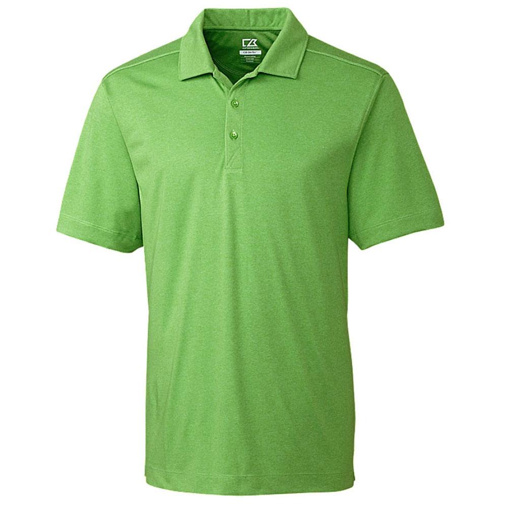 The solid look of the Cutter & Buck Men's Cilantro Heather Tall DryTec Chelan Polo provides a beautiful layout for your company's custom logo. The polyester jersey fabric fits in well for use on a company uniform, while also providing the necessary comfort for an every day outfit. A small logo can be added to the custom shirt to produce a classic appearance all around. The polo shirt is nice for use at company events and can be a fine gift to any long-term employee at your workplace.Highlights