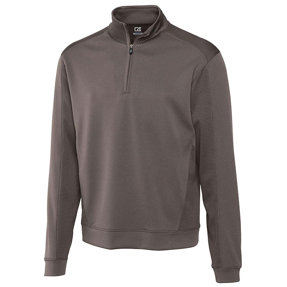 With the addition of your company's custom logo, the Cutter & Buck Men's Circuit Tall DryTec Edge Half-Zip will make your workers smile. This half-zip is great for use at casual occasions during the fall and winter. The polyester body pairs with a mock collar and a half-zip front for a modern look. Some small grooved accents can be found along the shoulders, sleeves, and sides to establish a comfortable style that allows air to move along. The inside lining is comfortable as well. The design on the half-zip outfit is suitable for many outside needs and does well for golf outings, outdoor recruiting events, and much more.Highlights