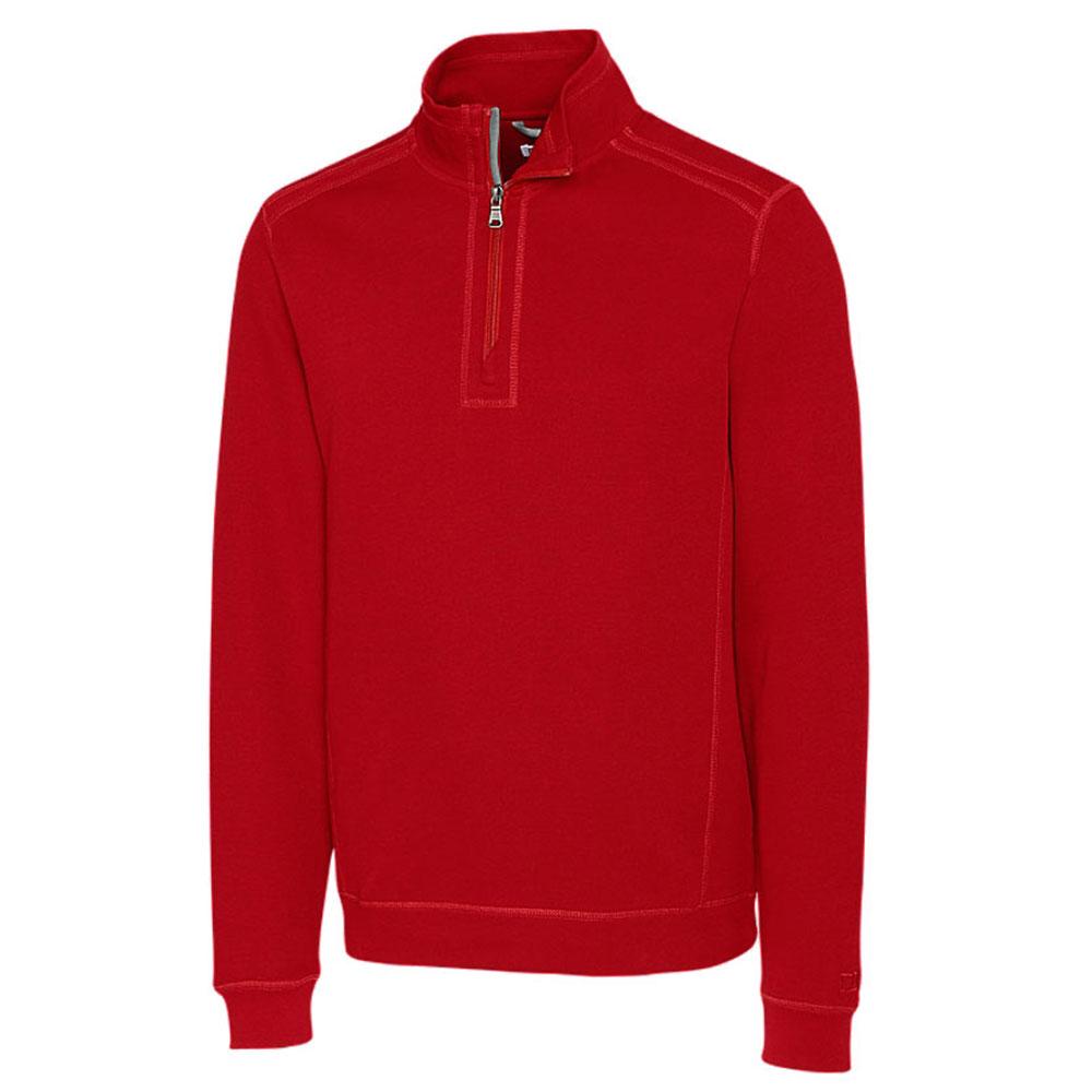 The Cutter & Buck Men's Cardinal Red Tall Bayview Half-Zip has a series of distinguished stitching features that would complement your company's custom logo well. The design adds a unique look for athletic events and can work for runners in the fall and others who are active during the cooler times of the year. With the addition of your custom logo, the quality design of this half-zip makes this a fine gift for long-tenured employees or those who have participated in certain business-related programs. The design offers a thick series of stitches around its body, including some along the half-zip design. The cotton fabric makes this a comfortable layering piece that your employees will appreciate.Highlights