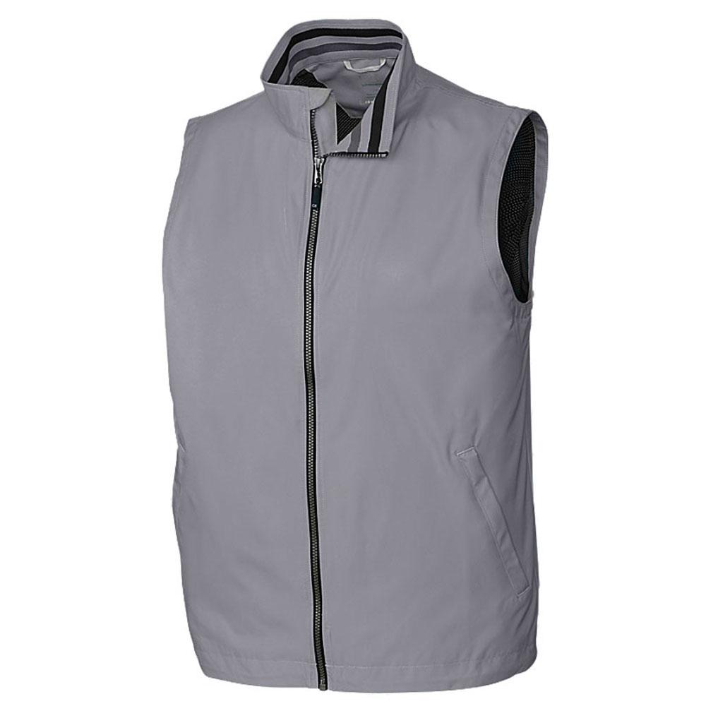 With the addition of your company's logo, the Cutter & Buck Men's Oxide Tall DryTec Nine Iron Vest will make a statement at your next corporate golf outing. With your custom branding, this vest will keep your employees looking sharp on the course. The lightweight polyester body includes a comfortable surface that resists water. The contrast zipper adds a relaxing style. A drawcord hem adds a good approach for a better fit. Try this outfit for size when looking for something outstanding to wear for any intention, especially for when you're looking to promote a fun corporate event.Highlights