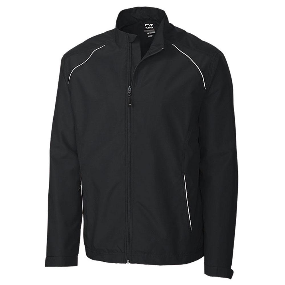 The Cutter & Buck Men's Black Tall WeatherTec Beacon Full-Zip Jacket Jacket makes the perfect canvas for your company's logo. The extra pocket space creates a nice surface for wear. The white lines along the shoulder area and the pockets add a nice space for wear. The polyester surface is breathable and light in weight for many golf outings and other company athletic occasions. The Cutter & Buck Men's Tall WeatherTec Beacon Full-Zip Jacket can be given to employees as part of a larger business wellness campaign or for any other special occasion for promotional needs.Highlights