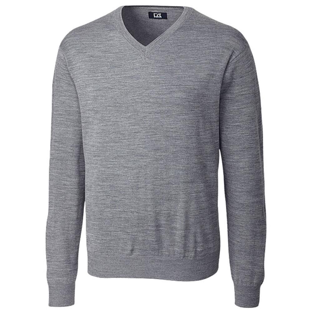 With the addition of your custom branding, the Cutter & Buck Men's Mid-Grey Heather Tall Douglas V-Neck is the perfect piece to add to your employees' company wardrobe. The outfit features a long-sleeve merino wool and acrylic surface with a V-neck at the top. The linked seams create a consistent design around the entire body of the outfit. The hem also blends in perfectly with the rest of the outfit. The design is great for casual business affairs and for recruitment occasions. The design is suitable as a gift at an athletic event too, what with it being suitable to wear in many light conditions or less intensive situations one gets into while outdoors.Highlights