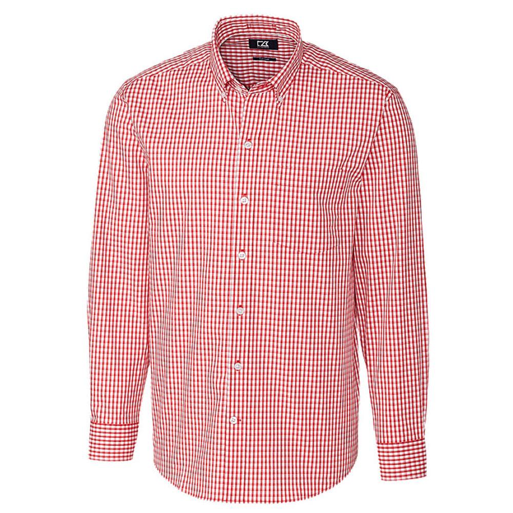 The Cutter & Buck Men's Cardinal Red Tall Long Sleeve Epic Easy Care Stretch Gingham Shirt makes a unique and fashionable canvas for your company's logo. The details make it look great on its own, although the shirt also works alongside a vest or other item you may use for a corporate uniform. The comfortable design includes a chest patch pocket, double pleats around its surface, and a button-down collar. The cuffs on the sleeves keep them intact without them riding up on anyone's arms. Order this as a professional outfit for anyone in the workplace to sport anywhere in the office.Highlights