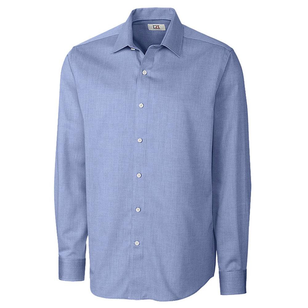 Cutter & Buck Men's Blue Tall Long Sleeve Epic Easy Care Mini Herringbone Shirt