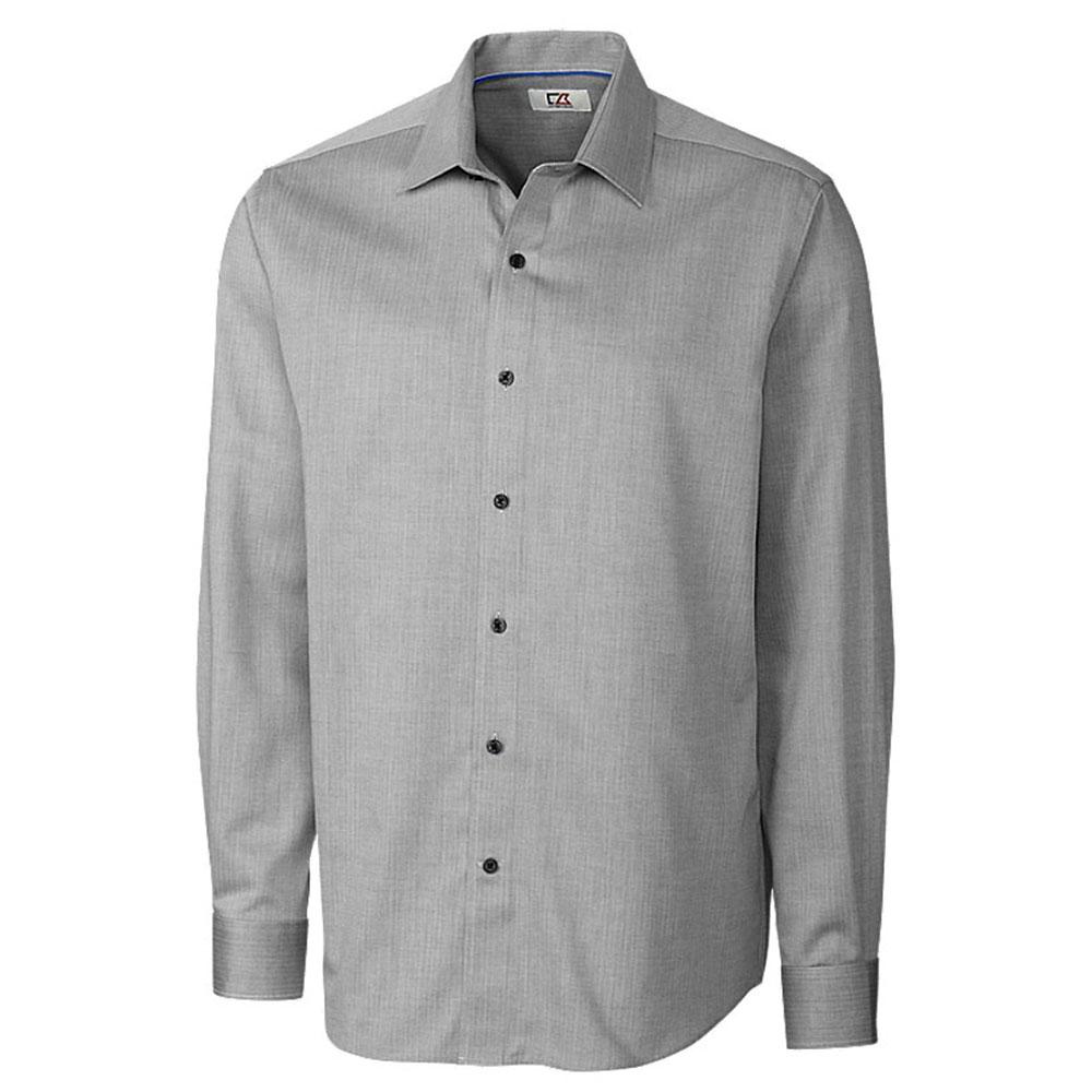 The Cutter & Buck Men's Charcoal Tall Long Sleeve Epic Easy Care Mini Herringbone Shirt is the perfect canvas for your company's custom logo. This shirt is suitable on its own as a fine work shirt, especially if a custom corporate logo is added to the breast pocket area, or under a jacket. The long-sleeve design includes a herringbone style with a spread collar. The logo buttons on the front add a classic touch. The box pleat spot on the back adds a comfortable surface for wear as well, thus making it a comfortable item for many work fashion needs. With the addition of your company's logo, this is the perfect way to market your brand outside of the office.Highlights