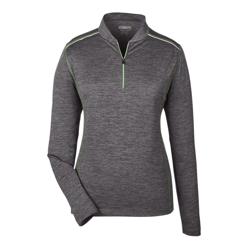 Core 365 Women's Carbon Heather/Acid Green Kinetic Performance Quarter Zip