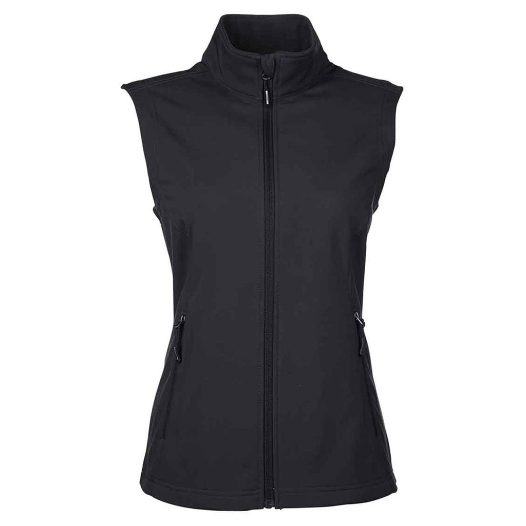Core 365 Women's Black Cruise Two-Layer Fleece Bonded Soft Shell Vest