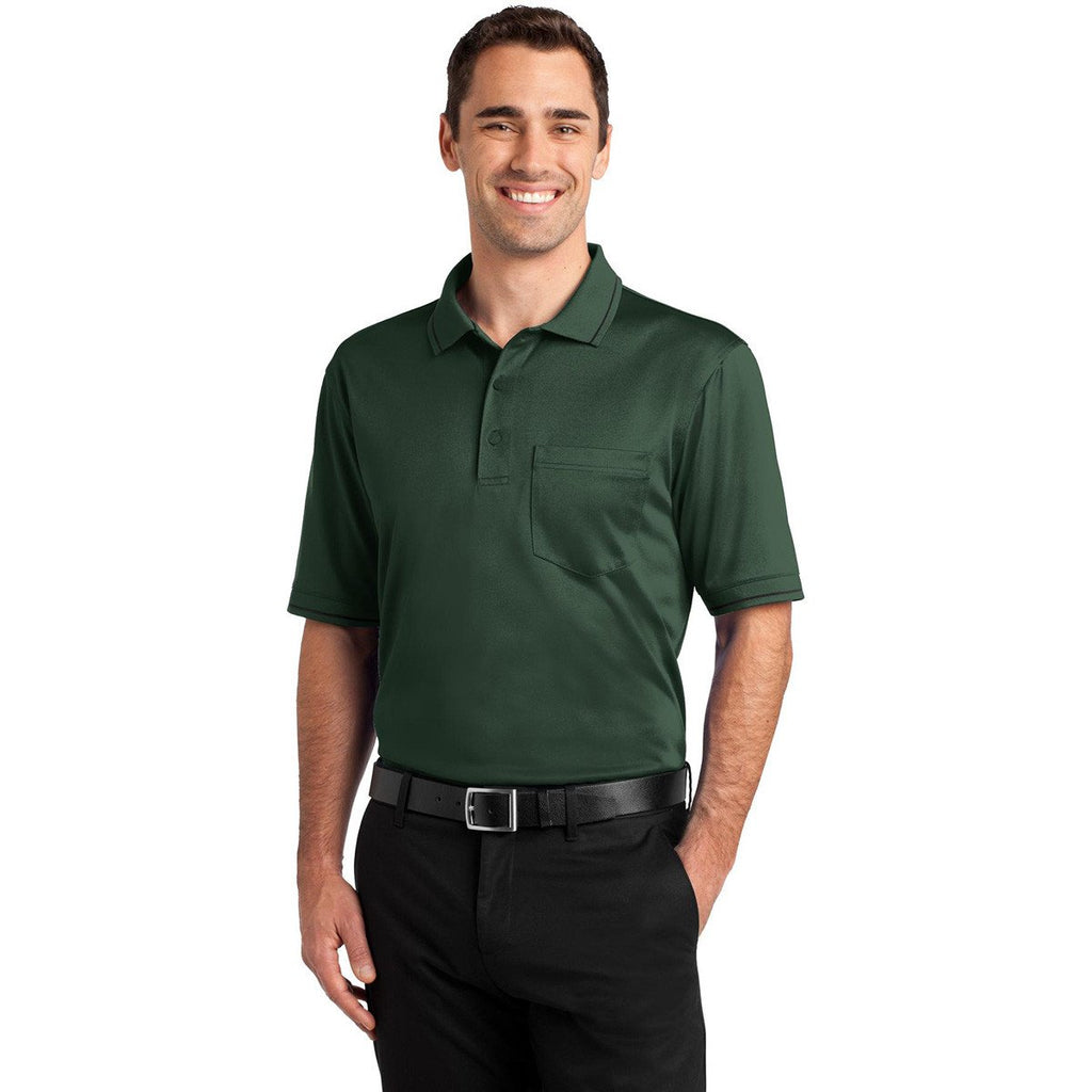 CornerStone Men's Dark Green/Black Select Snag-Proof Tipped Pocket Polo