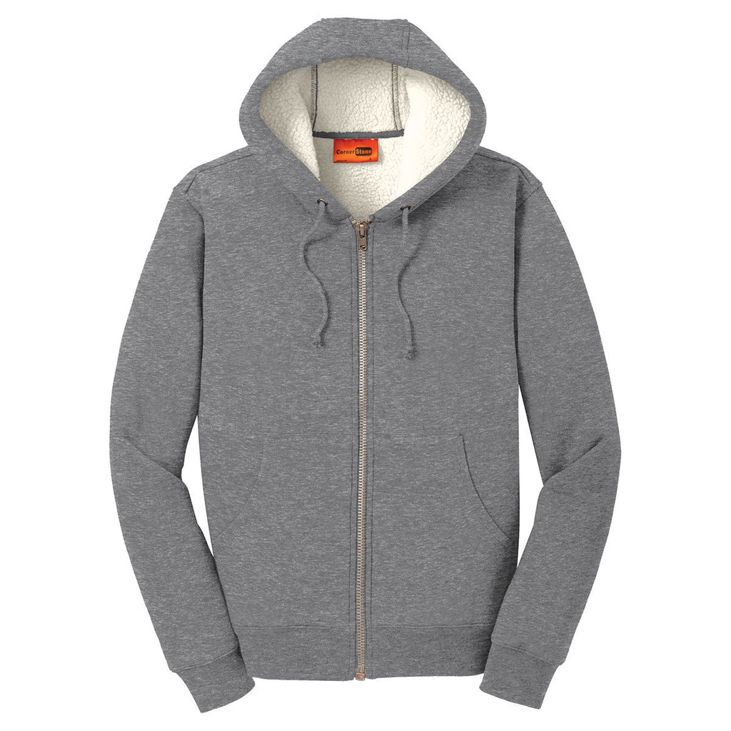 CornerStone Men's Grey Heavyweight Sherpa-Lined Hooded Fleece Jacket