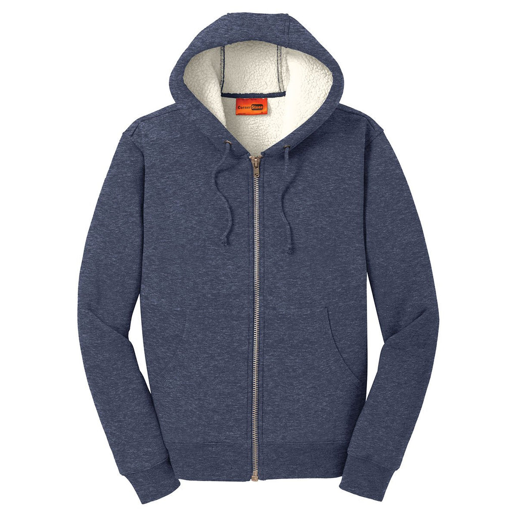 When your construction job requires you to spend extended periods in cold, windy conditions, you need to find a jacket that keeps your warm. Made with 12-ounce 60/40 cotton-polyester, the CornerStone Men's Navy Heavyweight Sherpa-Lined Hooded Fleece Jacket ensures your chilly job site never interferes with your performance. The 100% polyester thermal lining keeps the warmth within the jacket, without causing perspiration to make you feel uncomfortable. CornerStone designs this workwear with a DWR-finished outer layer that does an outstanding job of repelling light and moderate rain. Front hand warmer pockets double as places to store car keys and electronic devices. The embroidery location on the left chest allows you to display your company logo proudly.Highlights