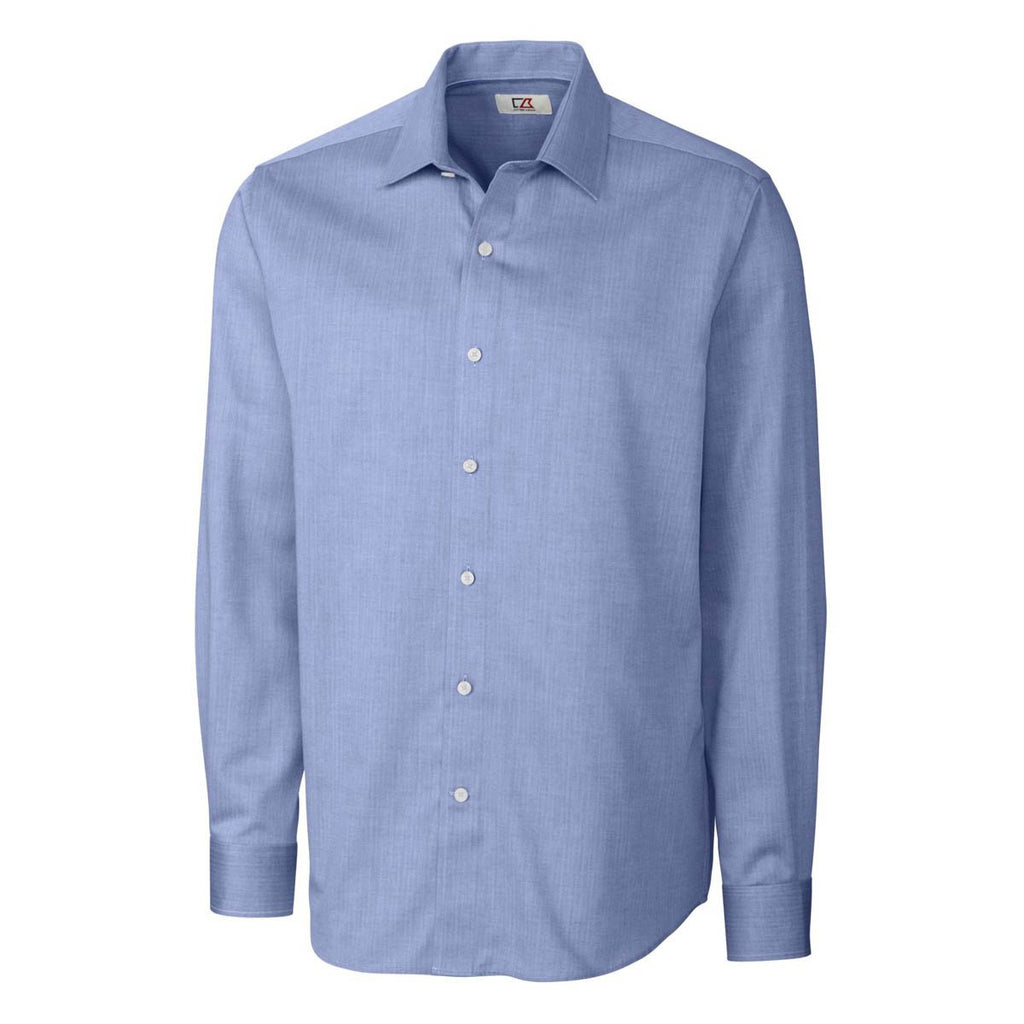Herringbone is a perfect template upon which to build a corporate uniform. Not only is it comfortable, but it's the very definition of business-casual with versatility. The Cutter & Buck Men's Blue L/S Epic Easy Care Mini Herringbone is exactly the kind of shirt that makes Herringbone an everyday shirt, too not only is it wrinkle-resistant, but it's easy to wash (cold setting) and dry (tumble dry on low). And adding your own custom embroidery or logo is simple; with no front pockets, this herringbone shirt is ready for elegant modification. Once attached, your logo will look as natural on this shirt as the French placket and the spread collar.Corresponding Women's Style: Cutter & Buck Women's Blue L/S Epic Easy Care Mini Herringbone