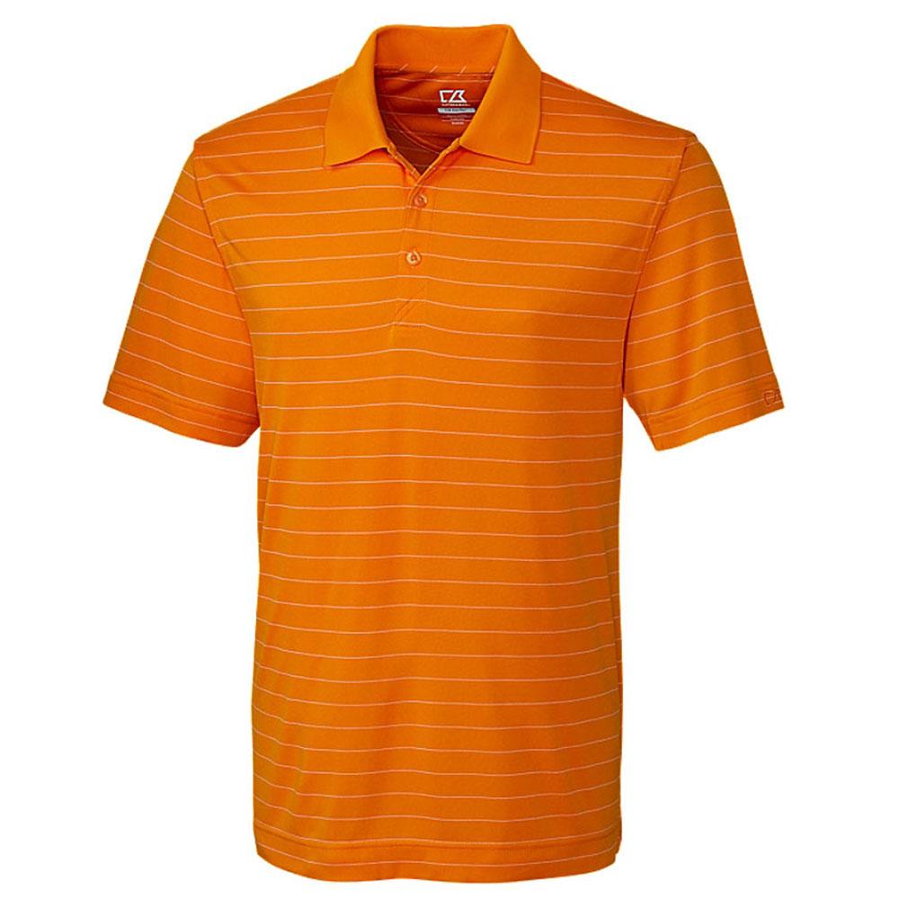 There's nothing to offer a slight twist on a classic shirt like a good set of tasteful stripes. That's exactly what you'll find with this Cutter & Buck Men's Orange Burst/White DryTec Franklin Stripe Polo, featuring a self-fabric neck tape at the inside back neck for a consistency you rarely find with polos.Add your custom logo to make this polo a canvas that contrasts against your brand.Highlights