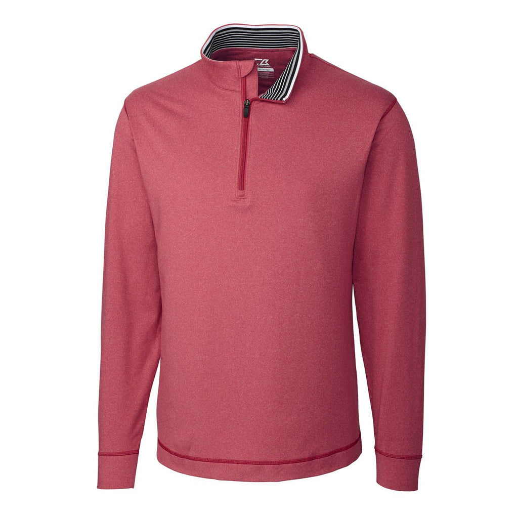 You wouldn't expect a half-zip shirt to be as friendly to warm weather as it was to cool weather,. But the Cutter & Buck Men's Cardinal Red DryTec L/S Topspin Half Zip delivers exactly that: a versatile piece that's good for all seasons. The polyester/spandex fabric blend is moisture-wicking and includes UV protection of 15+ UPF perfect for those transition months when the sun is still out but the weather's cooling down. The half zip exposed zipper makes it easy to move around, and the self fabric mock keeps the shirt looking as sharp as any half-zip has the right to be.Highlights