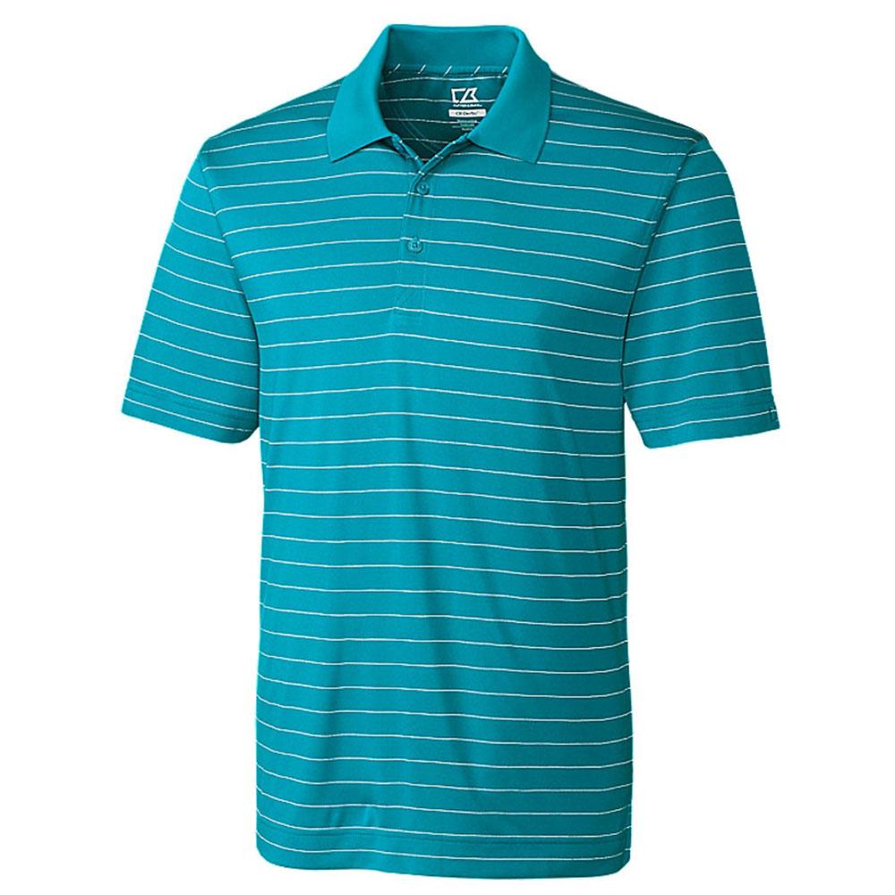 There's nothing to offer a slight twist on a classic shirt like a good set of tasteful stripes. That's exactly what you'll find with this Cutter & Buck Men's Aqua/White DryTec Franklin Stripe Polo, featuring a self-fabric neck tape at the inside back neck for a consistency you rarely find with polos. Add your custom logo to make this polo a canvas that contrasts against your brand.Highlights