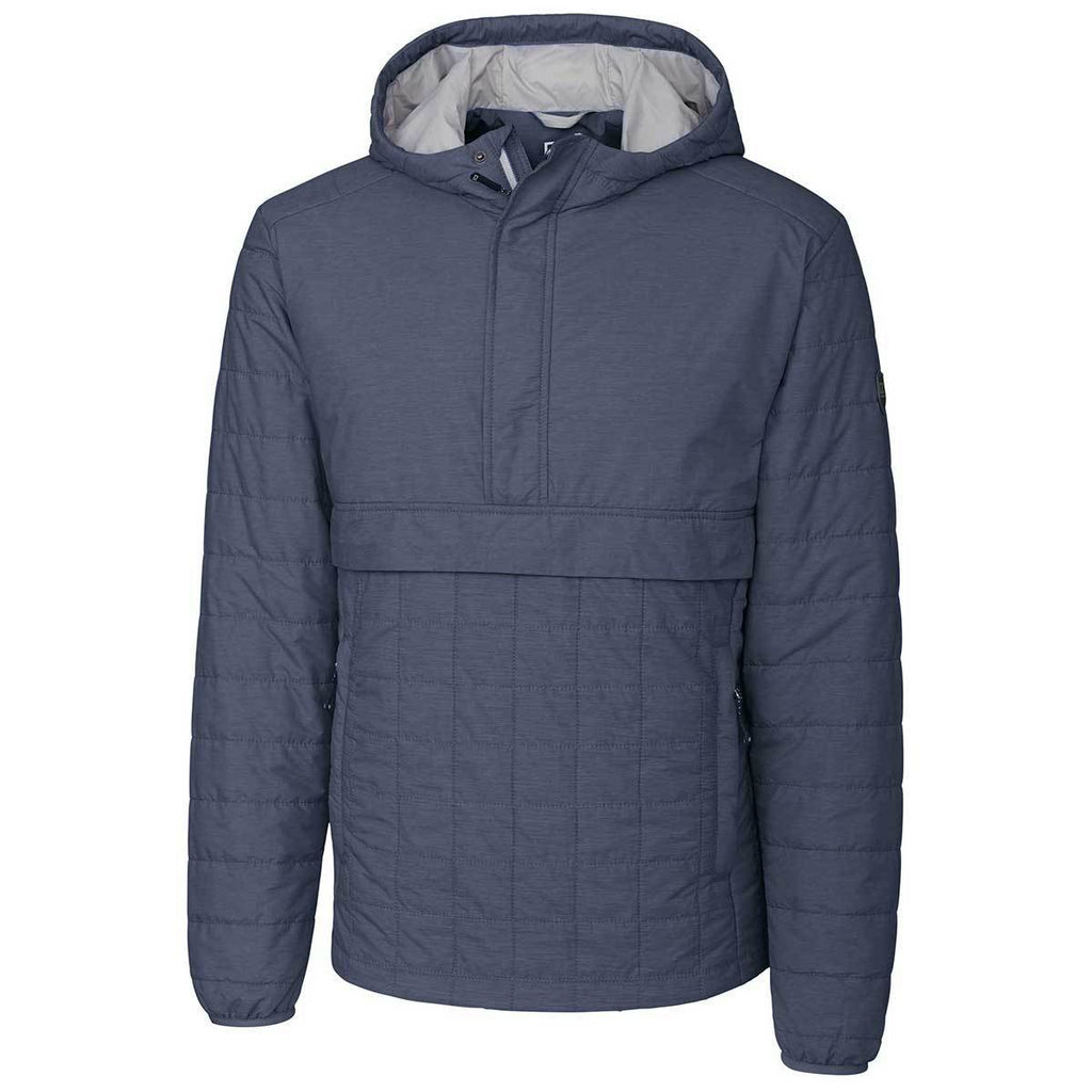 The Cutter & Buck Men's Anthracite Melange Rainier Half Zip Popover has a cool, contemporary look that your team will surely appreciate. For a branded item that everyone will want to get their hands on, simply add your company or team's custom logo or design to the front of this stylish piece of sportswear. A quilted pattern gives it an on-trend look that will appeal to modern audiences, while practical details like zippered front pockets, a hidden front zipper, and a lightweight Primaloft fill make it incredibly easy to wear.Highlights