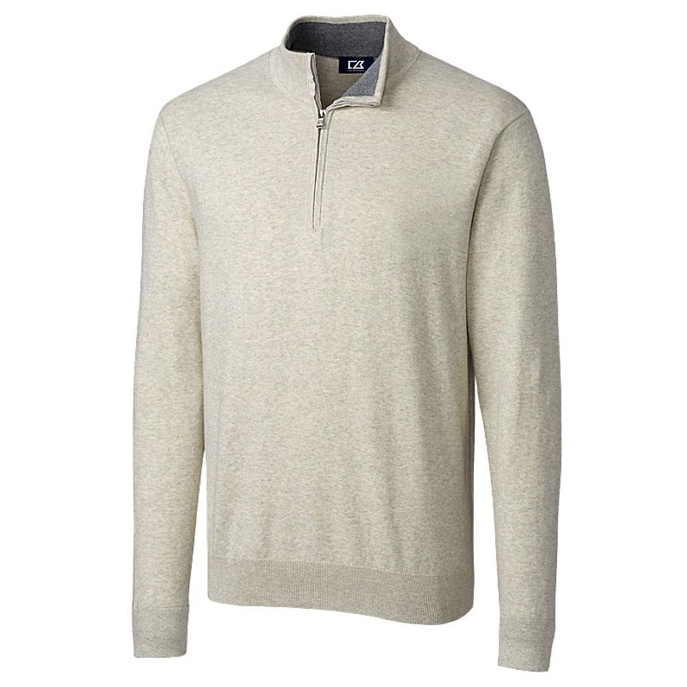 There's nothing that says stylish and casual quite like a half zipbut not just any half zip will do. If you want a quality layering piece that will be comfortable to wear, choose an option like this Cutter & Buck Men's Oatmeal Heather Lakemont Half Zip. The construction is an intriguing way to infuse the fabric with comfort and durability, while the small details like a linked seam provide you with more everyday style than you would have imagined a half zip can deliver. Add your corporate or custom event logo to this half zip to complete the picture.Highlights