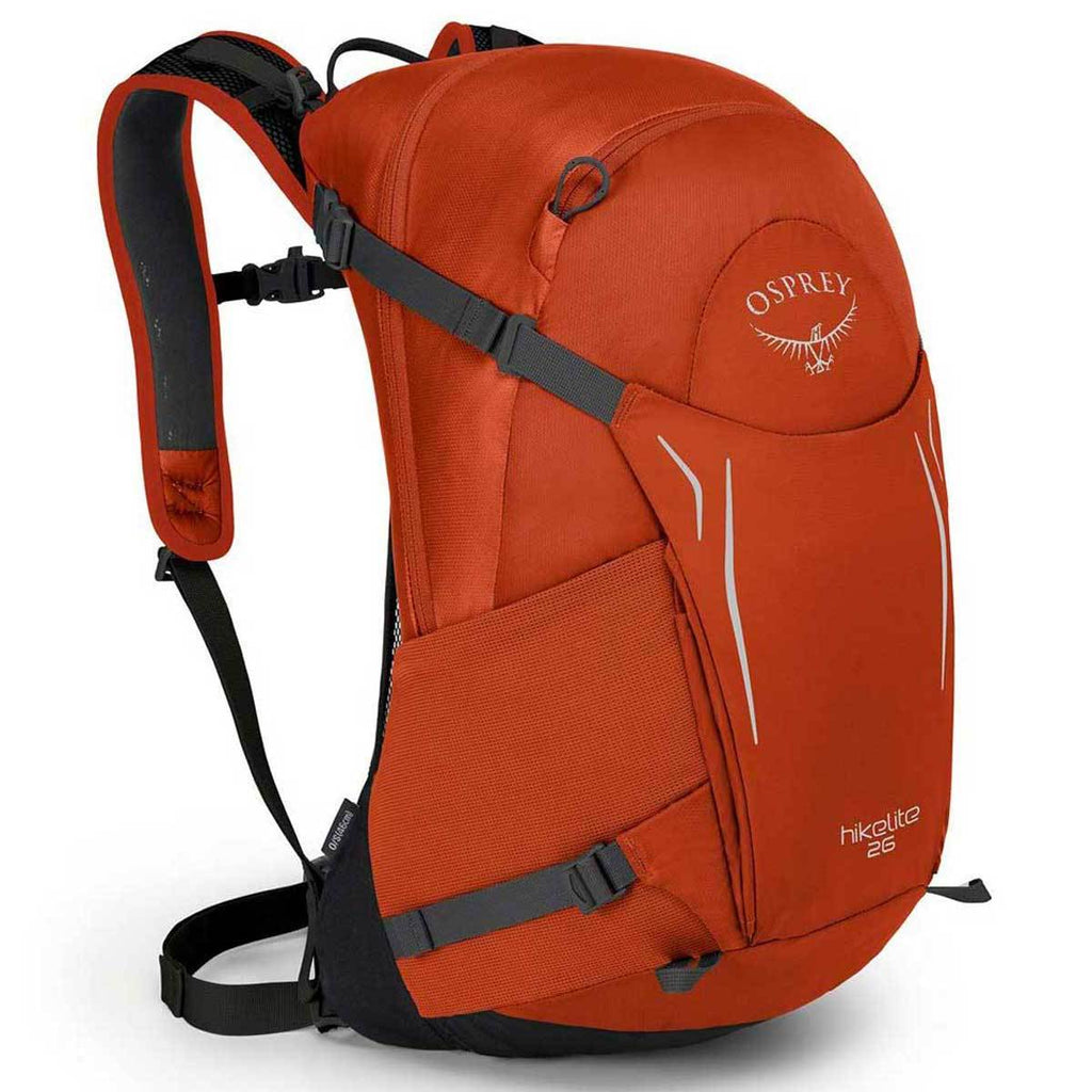 Going on a hiking trip? Let the Osprey Kumquat Orange Hikelite 26 Pack carry your essentials and keep you comfortable. With the pack's versatile nature and well-ventilated and durable build, adventures will definitely be less hassling. The Hikelite 26's AirSpeed back panel offers an incredible ventilation system, so that you don't have to deal with the discomfort of carrying a sweaty pack on your back. Plus, the pack also features an integrated rain cover for added protection against the rainy weather. Create the perfect advertisement of your company by adding your custom name or logo on the imprint area - personalize and you'll have a marvelous event giveaway or custom gift for your next trade shows, company events and more.Highlights