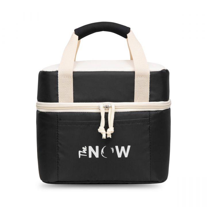 Pack your bento box inside the custom Gemline Black Bento Cooler when you travel and you'll be able to enjoy your meal in its optimal temperature. This Gemline exclusive piece has a dual-zippered opening to its main compartment for easy packing and unpacking of meals, an interior zippered mesh pocket for small snacks and a neoprene top handle for easy carrying. Customizable with a printed logo on the front panel - perfect as an employee gift or event giveaway!
