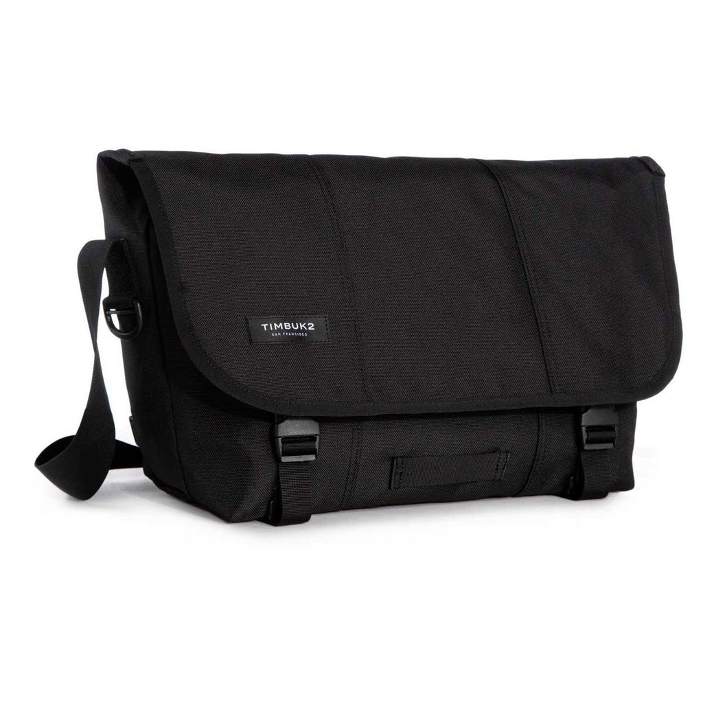 Generate hundreds of real-world impressions every day with your company logo or brand name imprint on this Timbuk2 Jet Black Classic Messenger - Medium. It's designed with a large front flap that offers generous room for logo placement making your business identity's visibility loud and clear and on the move. Classic and versatile, this bag's roomy interior ensures essentials stay close at-hand without overcrowding. Highlights include internal pocketing that keeps stuff organized, waterproof TPU liner, adjustable shoulder strap, hook and loop placement and Strap Pad. Perfect for work, the weekend and beyond.