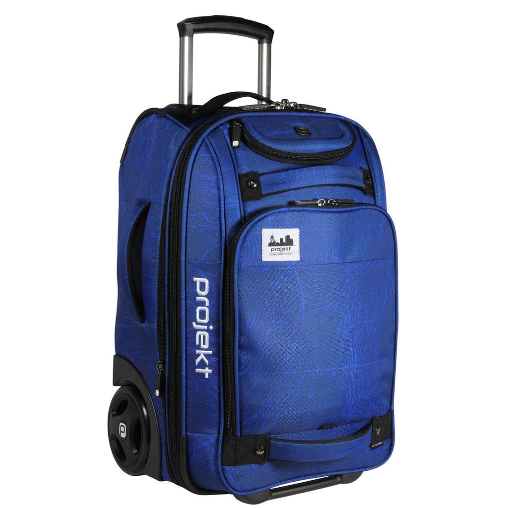 The Projekt Blue Topo 21" Puddle Jumper Luggage is designed for maximum business and personal travel storage. This luggage has a spacious main compartment, crush resistant fur-lined accessory pocket, internal mesh zippered compartment and internal garment organizing compression strap to keep clothes and toiletries neatly organized.Highlights