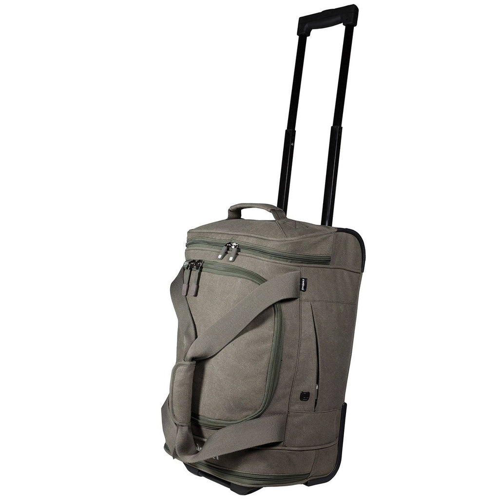 Do you ever wish your Projekt Sand Co-Pilot Rolling Duffel had wheels so that you didn't have to strain your shoulder carrying it through the airport? Well...you're in luck! This polyester duffle bag rolls effortlessly through hotel lobbies and airport terminals. It is sized to meet carry-on standards so you don't have to check it at airports and it comes with great functionality and a customizable style. It features a retractable handle for swift maneuvering through airport terminals, train stations and other transportation hubs. Perfect for business or corporate travel, zippered pockets to organize your things, while the retractable handle and in-line skate wheels help you easily transport this bag anywhere you go.Highlights