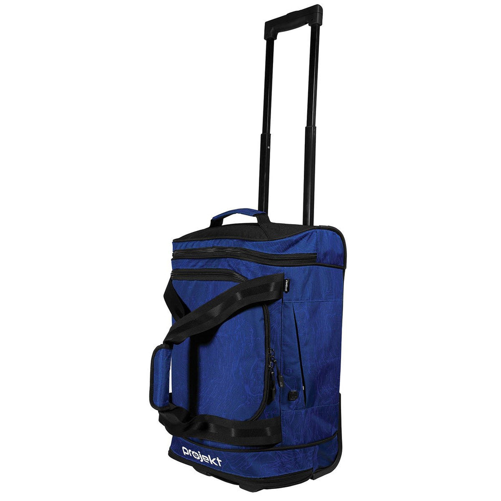 Do you ever wish your Projekt Blue Topo Co-Pilot Rolling Duffel had wheels so that you didn't have to strain your shoulder carrying it through the airport? Well...you're in luck! This polyester duffle bag rolls effortlessly through hotel lobbies and airport terminals. It is sized to meet carry-on standards so you don't have to check it at airports and it comes with great functionality and a customizable style. It features a retractable handle for swift maneuvering through airport terminals, train stations and other transportation hubs. Perfect for business or corporate travel, zippered pockets to organize your things, while the retractable handle and in-line skate wheels help you easily transport this bag anywhere you go.Highlights