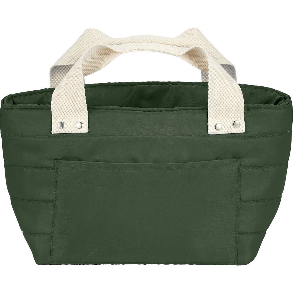 The Leed's Olive Quilted Lunch Cooler has a decidedly outdoorsy look thanks to the exterior quilting inspired by down jackets. It has all of the features you'd expect in a lunch tote including a zippered main compartment, insulated lining, and a pocket that can hold silverware or an ice pack. Add a company logo to the exterior front pocket and you've got a practical corporate gift for employees and clients.The minimum order for this product is 72 pieces.