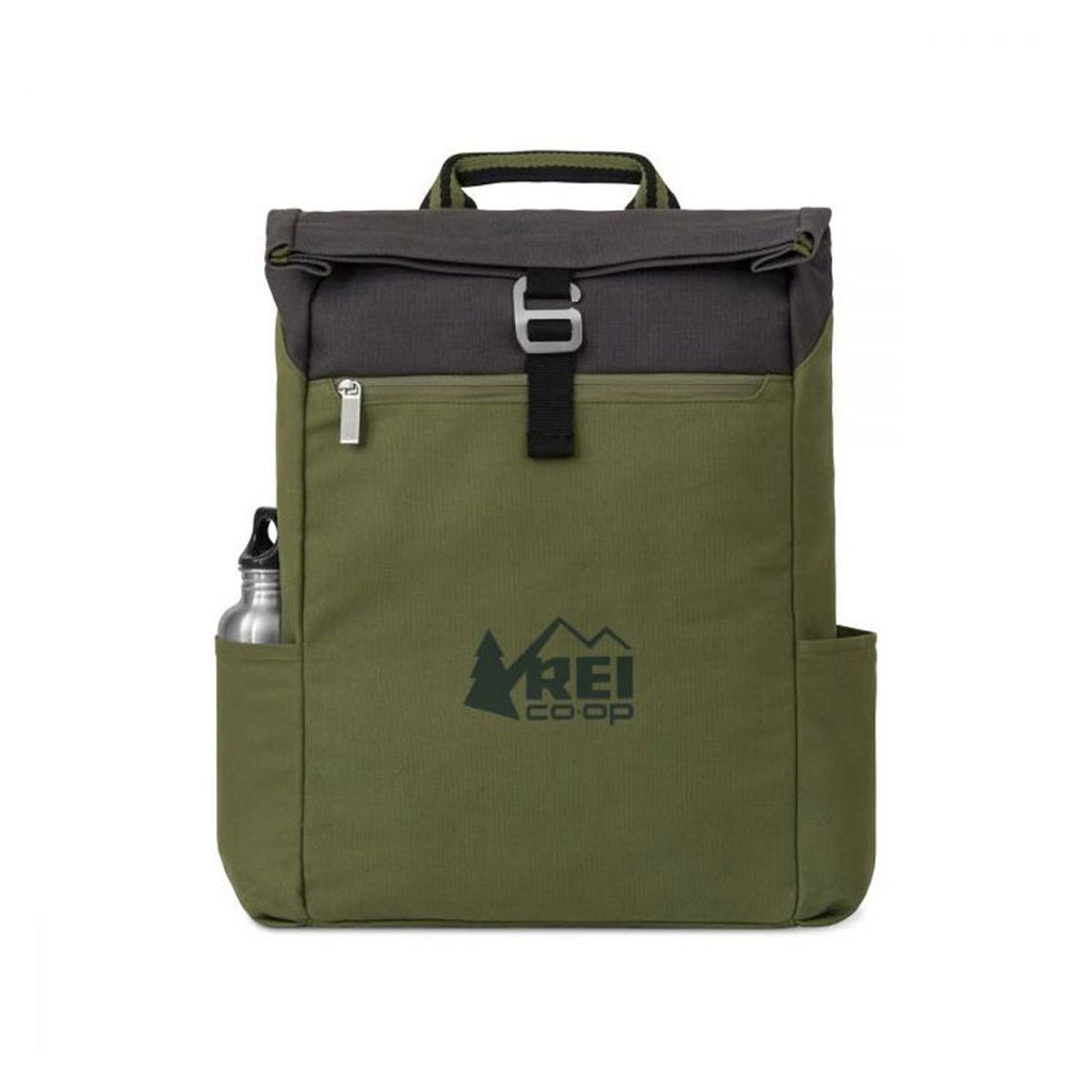 Featuring a roll-top design, this Gemline Deep Forest Green Charlie Cotton Computer Backpack will keep their belongings safe and sound whether embarking on corporate adventures or hitting the trails. This promotional backpack has an ample area for your company's name or logo and makes the perfect giveaway item at corporate meetings, trade shows, fundraisers and more. It has lasting usage and guarantees repeat display of the custom message.