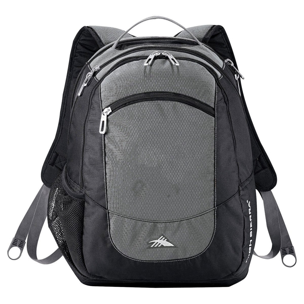 The lightweight design of the High Sierra Grey Fly-By 17" Computer Backpack makes it an immediate hit with students and workers alike. The backpack comes with padded shoulder straps that let air move through them. Several compartments are included for not only a laptop but also for peripherals. The backpack can make for a desired company giveaway gift. Add your custom logo to the backpack to complete the look.Highlights