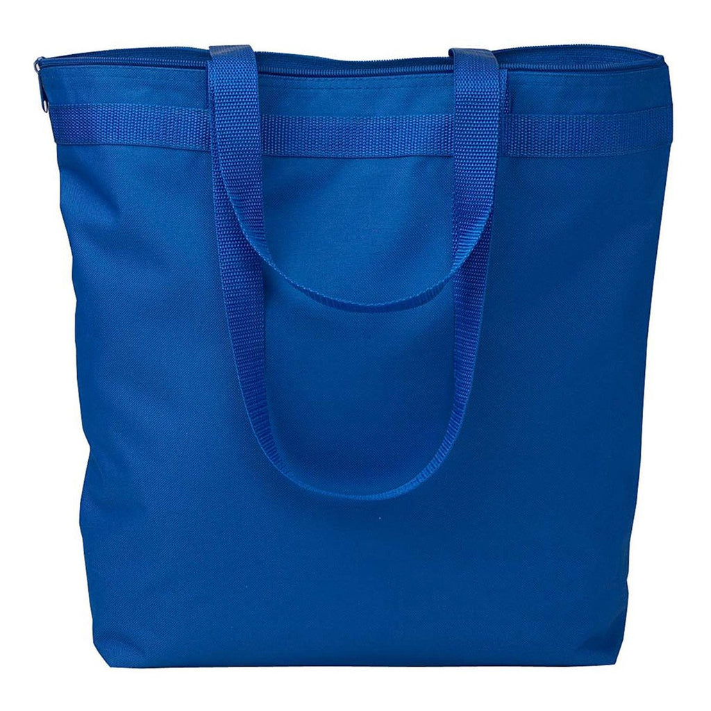 The minimum order for this product is 12 piecesDo you remember the last time you went grocery shopping and the paper bag holding your perishables ripped open on your way from leaving the empty cart by the store to the short walk to your car? The frustration of losing a dozen eggs and several bottles of soda put you on a mission to find a highly durable tote bag that handles the rigors of grocery and department store shopping. With a gusseted bottom, the UltraClub Royal Melody Large Tote bag offers protection against strong impacts made on the ground. The highly durable webbing reinforced top complements the polyester exterior that resists rips and tears. Add your corporate logo to enhance your company image at business seminars and conferences.