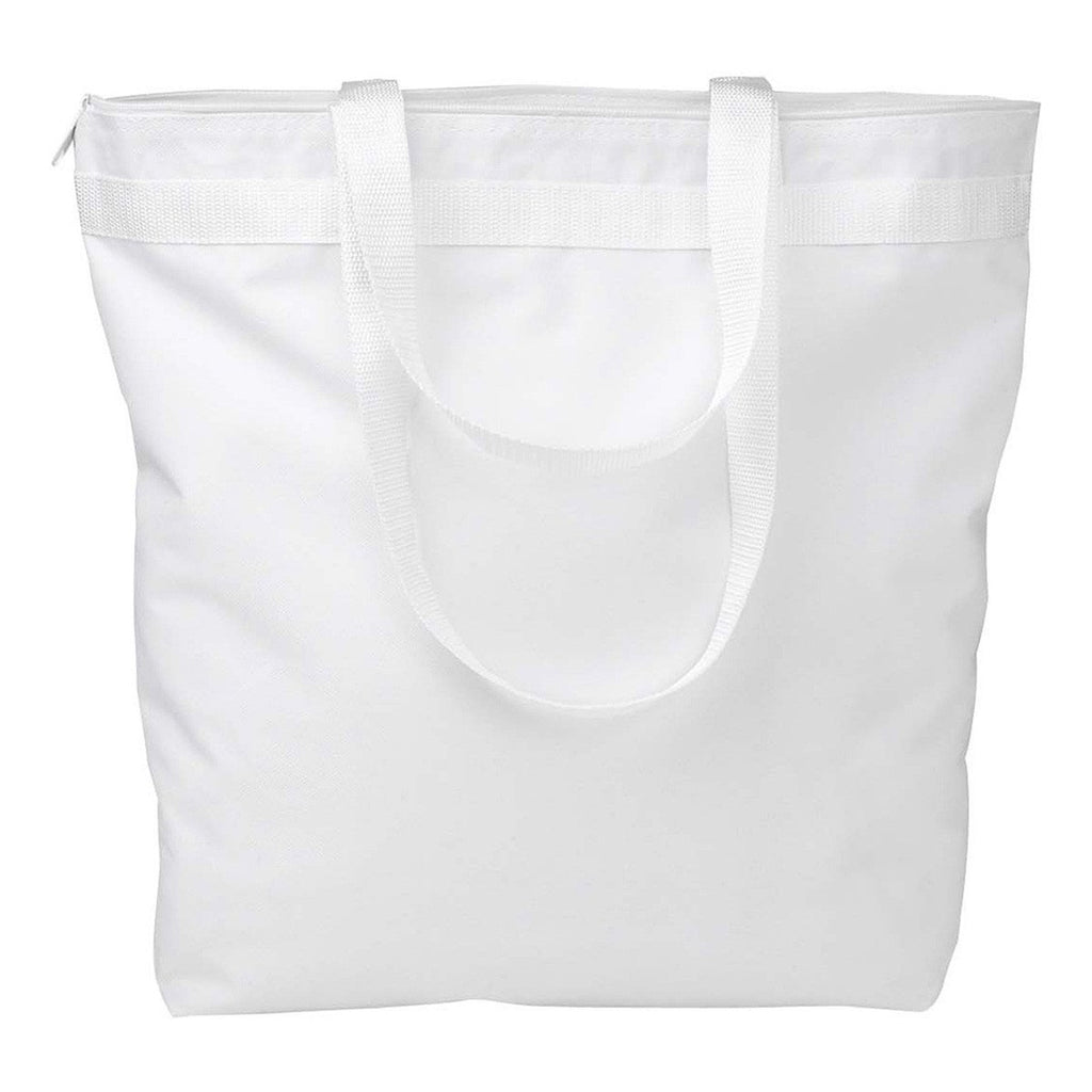 The minimum order for this product is 12 piecesDo you remember the last time you went grocery shopping and the paper bag holding your perishables ripped open on your way from leaving the empty cart by the store to the short walk to your car? The frustration of losing a dozen eggs and several bottles of soda put you on a mission to find a highly durable tote bag that handles the rigors of grocery and department store shopping. With a gusseted bottom, the UltraClub White Melody Large Tote bag offers protection against strong impacts made on the ground. The highly durable webbing reinforced top complements the polyester exterior that resists rips and tears. Add your corporate logo to enhance your company image at business seminars and conferences.