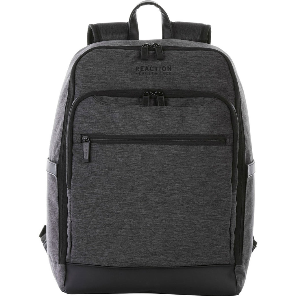 There is plenty of space on the front of the Kenneth Cole Grey Executive 15" Computer Backpack for your custom logo or design. With a sleek gray heather and black vinyl accents, it features zippered slash pockets for added storage and style. Inside, it contains a generous interior as well as separate pockets for your 15" laptop and tablet to fit comfortably.Highlights