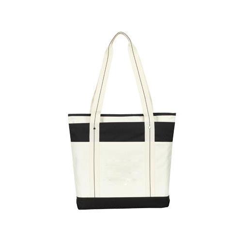 Get carried away when you add your logo to this customizable Atchison Black Hamptons Getaway Tote! A great eco-friendly alternative to plastic bags, this tote boasts a large interior for carrying all the day's essentials. Highlights include a zippered main compartment, front slip pocket and shoulder-length handles.The minimum order for this product is 50 pieces.