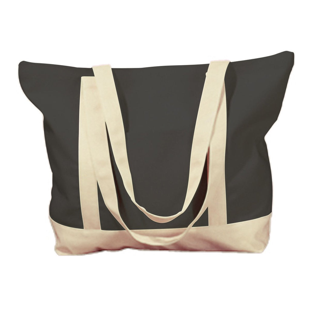 The minimum order for this product is 12 piecesYou might not think that a 100% cotton tote bag can handle the punishment inflicted on it at crowded markets. The 100% cotton BAGedge Black/Natural 12 oz Canvas Boat Tote bag resists the types of rips and tears that render other brand tote bags obsolete. Long carrying handles allow you to balance heavy loads against your hip to give you more movement flexibility in tight grocery store aisle. Place the tote on your right shoulder to grab a carton of milk out of the refrigeration unit and then quickly move the tote bag to the left shoulder to allow a customer to pass you by. Add a custom logo to promote your business to potential customers that shop at the same grocery and department stores.