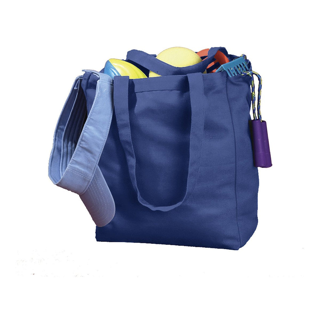 The minimum order for this product is 12 piecesHave you ever carried a tote bag that grinded on your shoulder? Eliminate the painful frustration of carrying a tote bag that includes handles that are too short to provide comfort. With long handles, the BAGedge Royal 12 oz Book Tote bag allows you to balance heavy loads against your side. You always maintain control of your body movements by adjusting the handles accordingly. The zippered closure ensures your things remain secure inside of packed airplane luggage compartments. Strong fabric never succumbs to the rigors of grocery shopping abuse. Available in several colors, the tote bag makes a stylish statement while you travel for business. Take advantage of the attention by adding your company logo on the large imprint area.