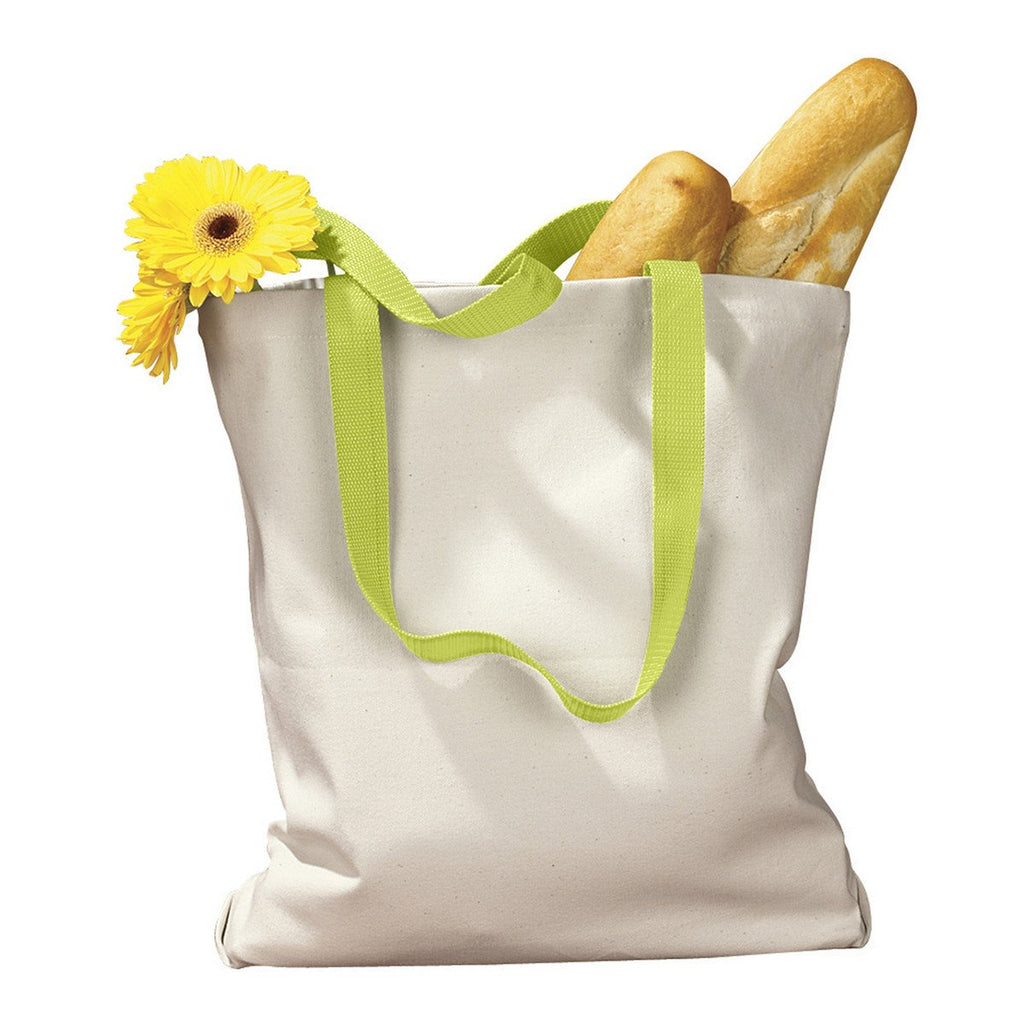 The minimum order for this product is 24 piecesYou might not think that a 100% cotton tote bag can handle the punishment inflicted on it at crowded markets. The 100% cotton BAGedge Natural/Lime 12 oz Canvas Tote with Insert Color here Handles bag resists the types of rips and tears that render other brand tote bags obsolete. Long carrying handles allow you to balance heavy loads against your hip to give you more movement flexibility in tight grocery store aisle. Place the tote on your right shoulder to grab a carton of milk out of the refrigeration unit and then quickly move the tote bag to the left shoulder to allow a customer to pass you by. Add a custom logo to promote your business to potential customers that shop at the same grocery and department stores.