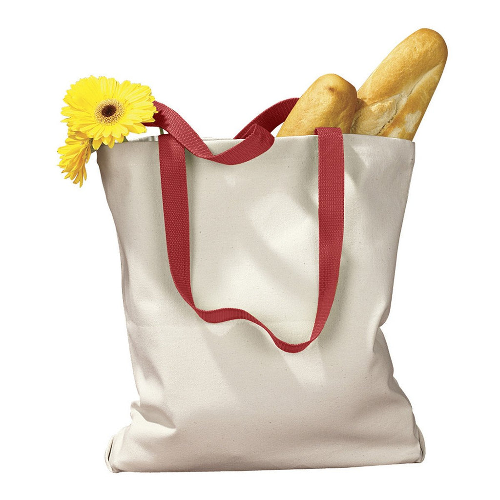 The minimum order for this product is 24 piecesYou might not think that a 100% cotton tote bag can handle the punishment inflicted on it at crowded markets. The 100% cotton BAGedge Natural/Red 12 oz Canvas Tote with Insert Color here Handles bag resists the types of rips and tears that render other brand tote bags obsolete. Long carrying handles allow you to balance heavy loads against your hip to give you more movement flexibility in tight grocery store aisle. Place the tote on your right shoulder to grab a carton of milk out of the refrigeration unit and then quickly move the tote bag to the left shoulder to allow a customer to pass you by. Add a custom logo to promote your business to potential customers that shop at the same grocery and department stores.