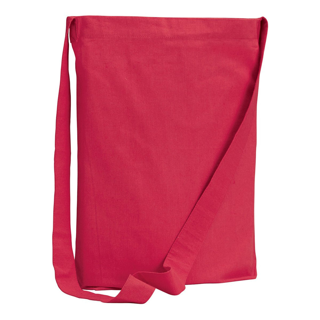 The minimum order for this product is 24 piecesYou might not think that a 100% cotton tote bag can handle the punishment inflicted on it at crowded markets. The 100% cotton BAGedge Red 6 oz Canvas Sling Tote bag resists the types of rips and tears that render other brand tote bags obsolete. Long carrying handles allow you to balance heavy loads against your hip to give you more movement flexibility in tight grocery store aisle. Place the tote on your right shoulder to grab a carton of milk out of the refrigeration unit and then quickly move the tote bag to the left shoulder to allow a customer to pass you by. Add a custom logo to promote your business to potential customers that shop at the same grocery and department stores.